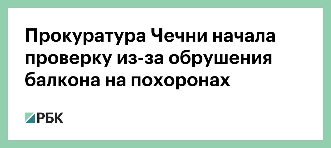 Прокуратура Чеченской Республики начала проверку из-за обрушения балкона на похоронах. Это произошло в селе Ишхой-Юрт Гудермесского района. О начале проверки сообщили в телеграм-канале прокуратуры.