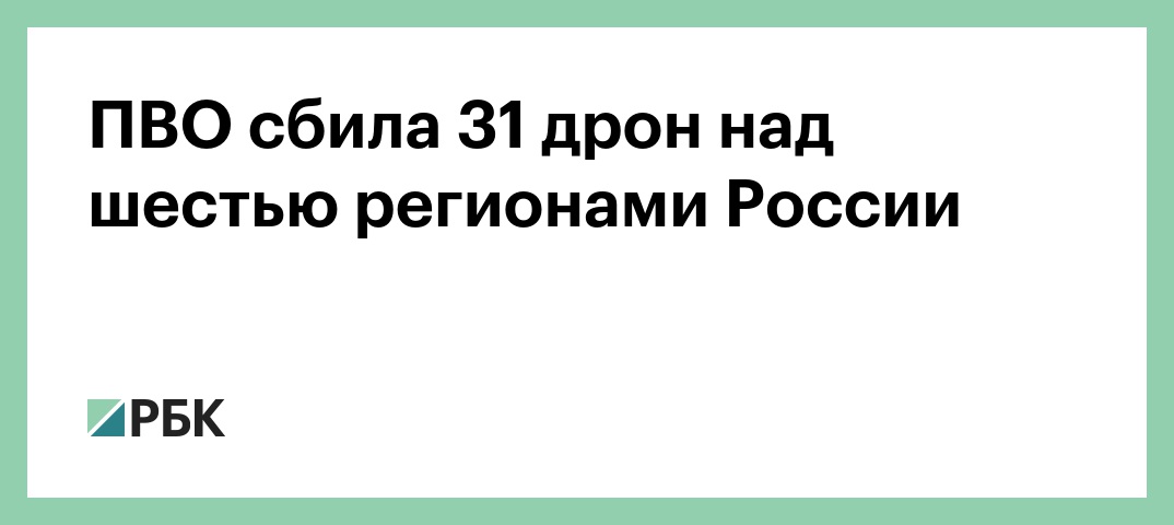 Вечером силы ПВО перехватили 31 беспилотник над шестью регионами России, сообщает Минобороны.