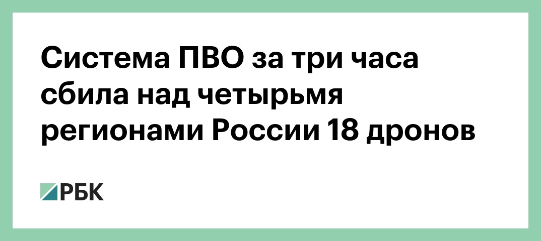 Система ПВО за три часа сбила над четырьмя регионами России 18 дронов