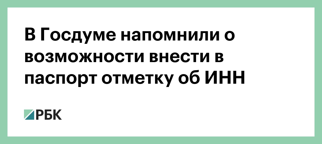 «Каждый гражданин России имеет право по своему желанию внести отметку о присвоенном идентификационном номере налогоплательщика (ИНН) в паспорт. Такая возможность предусмотрена постановлением правительства РФ № 32 от 22 января 2002 года», — напомнила депутат.