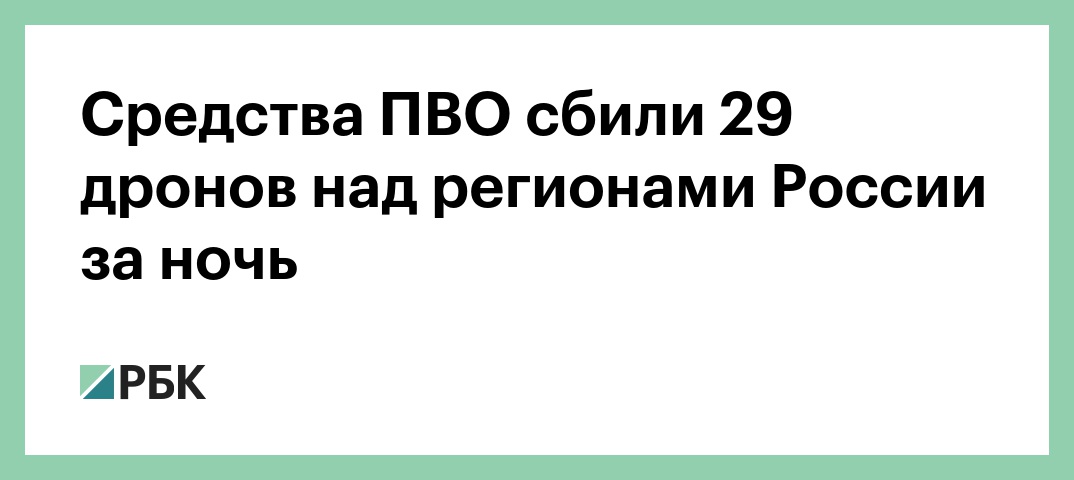 Минобороны: средства ПВО сбили 29 дронов над регионами России за ночь