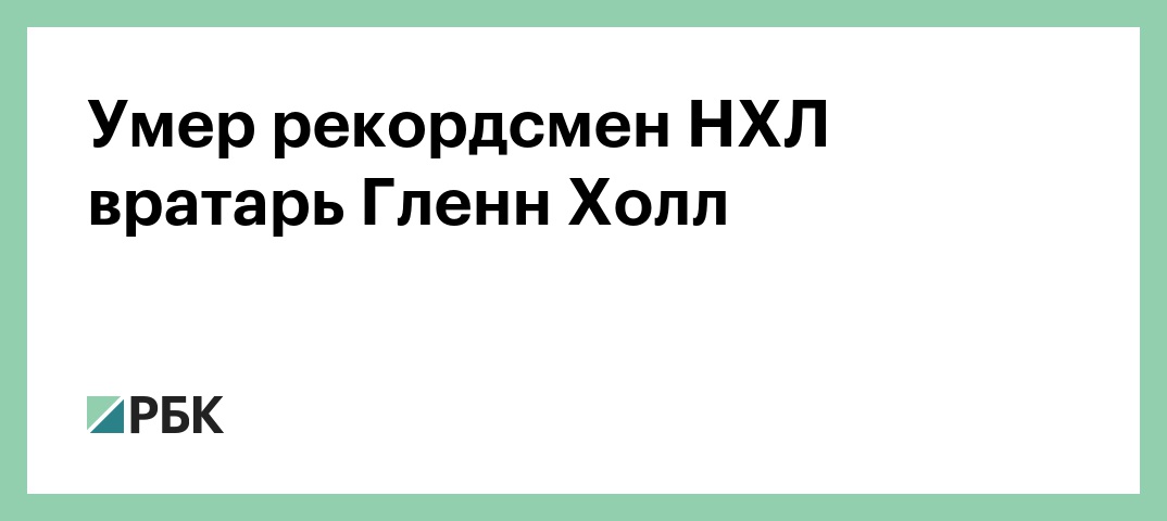 Рекордсмен Национальной хоккейной лиги (НХЛ) среди вратарей по количеству проведенных подряд матчей канадец Гленн Холл умер в возрасте 94 лет. Об этом сообщила НХЛ.