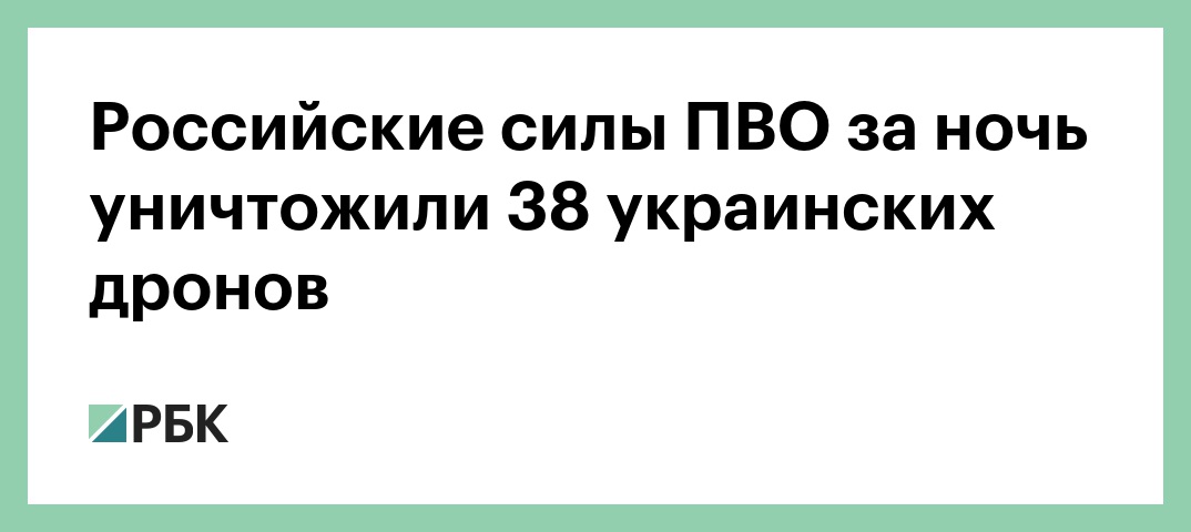 «В течение прошедшей ночи дежурными средствами ПВО перехвачены и уничтожены 38 украинских беспилотных летательных аппаратов самолетного типа», — говорится в сообщении.