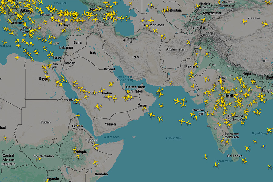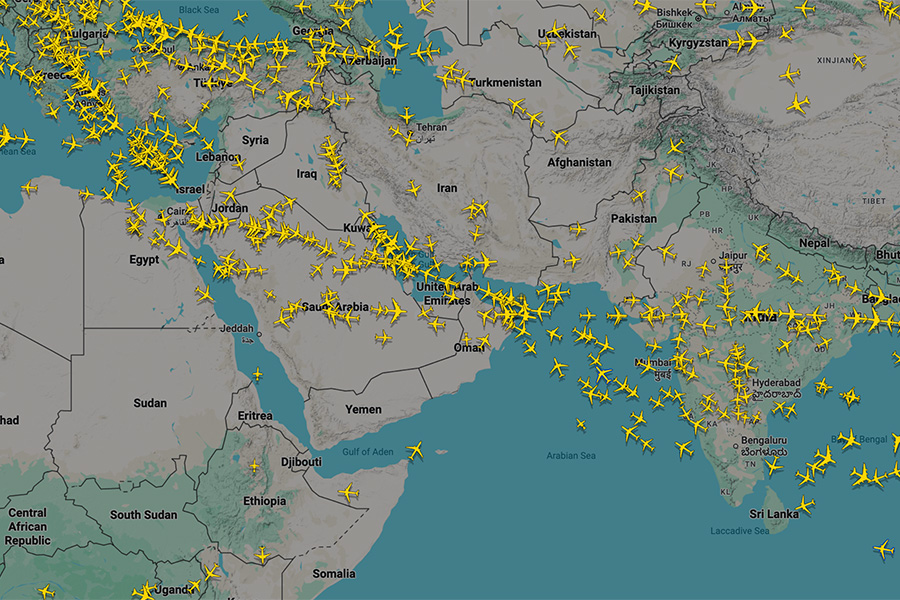 Появилась карта изменившихся маршрутов самолетов из-за конфликта с Ираном