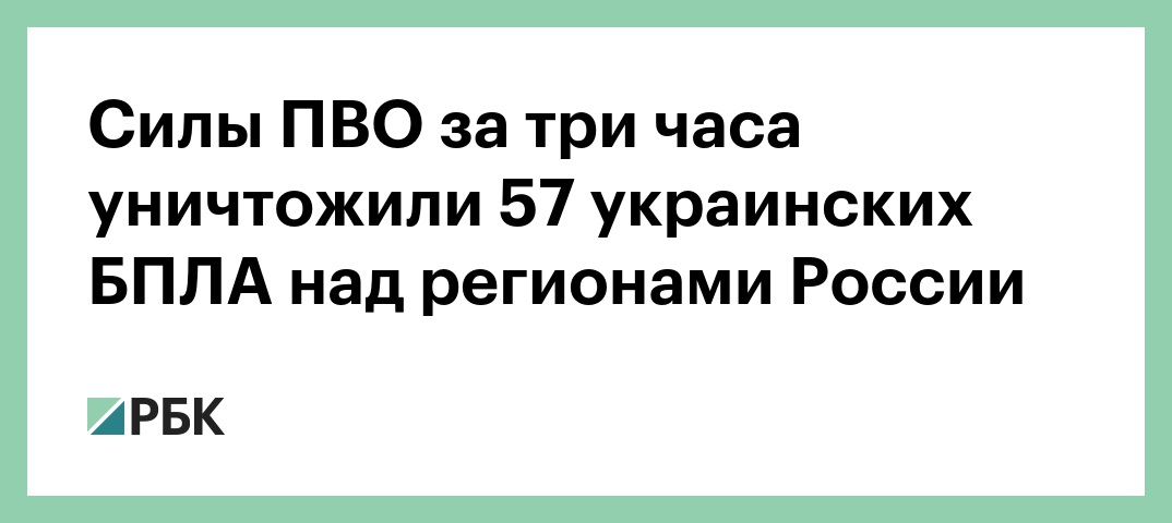 Силы ПВО за три часа уничтожили 57 украинских БПЛА над регионами России
