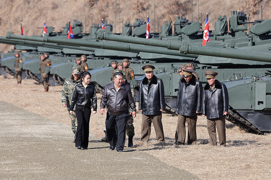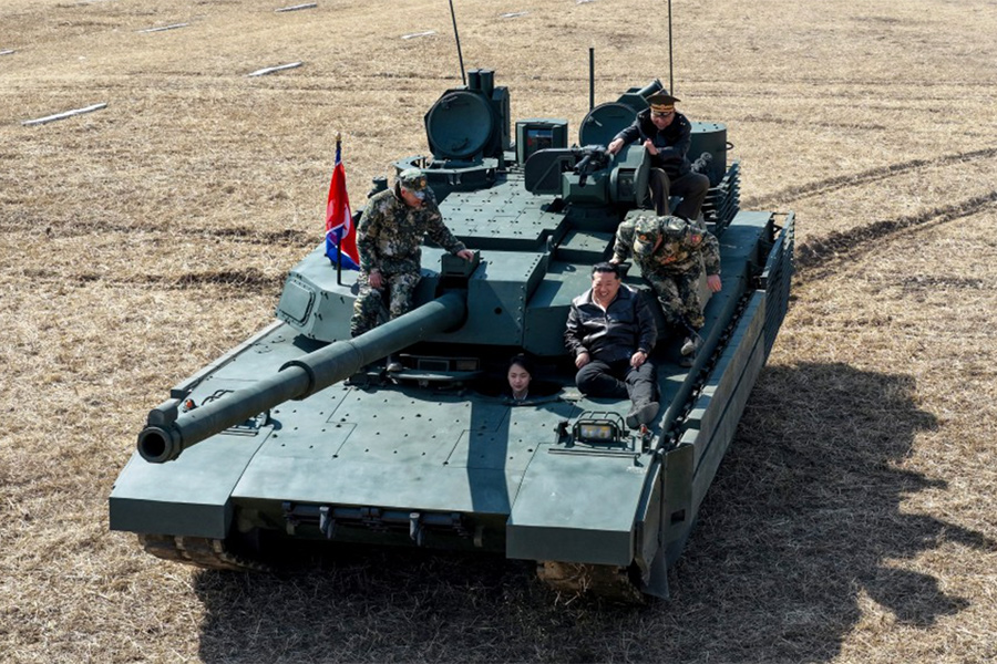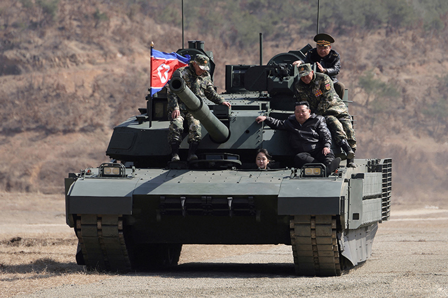 Лидер КНДР Ким Чен Ын вместе с дочерью Ким Чжу Э проехал на танке во время тактических учений на учебной базе корпуса столичной обороны Корейской народной армии. Об этом свидетельствуют фото, опубликованные Центральным телеграфным агентством Кореи (ЦТАК).