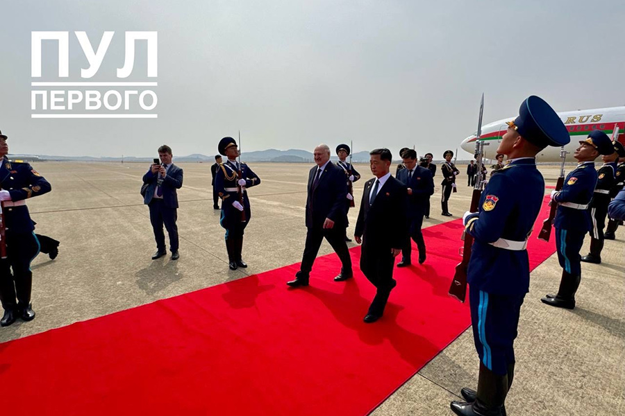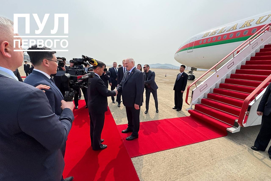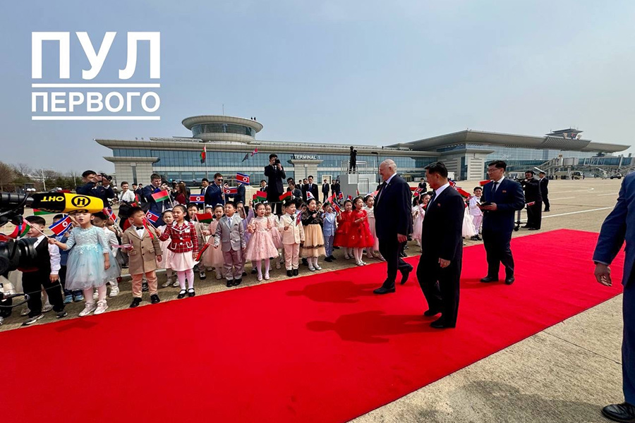 Лукашенко в аэропорту встретили первый заместитель премьер-министра КНДР Ким Ток Хун и министр иностранных дел Белоруссии Максим Рыженков.