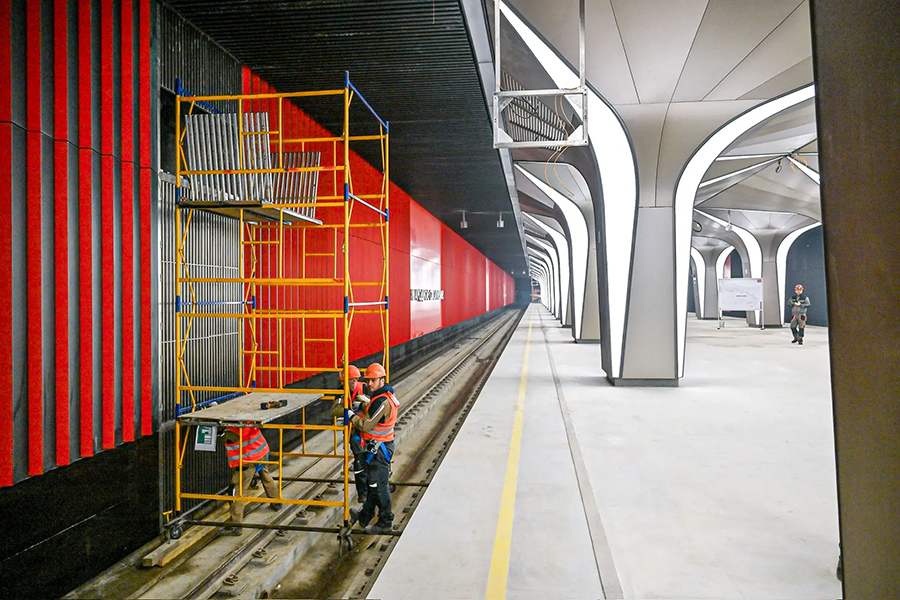 В Москве завершается строительство первого участка Рублёво-Архангельской линии метро и станции «Народное Ополчение», сообщил мэр столицы Сергей Собянин в мессенджере Мах. Он опубликовал фотографии интерьера новой станции.