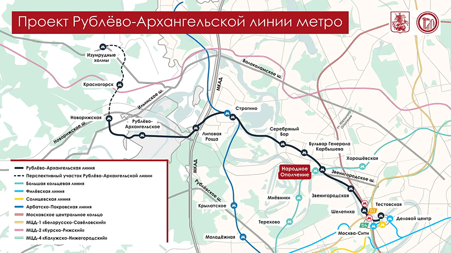 Окончание строительства первого участка Рублёво-Архангельской линии запланировано на 2026 год.