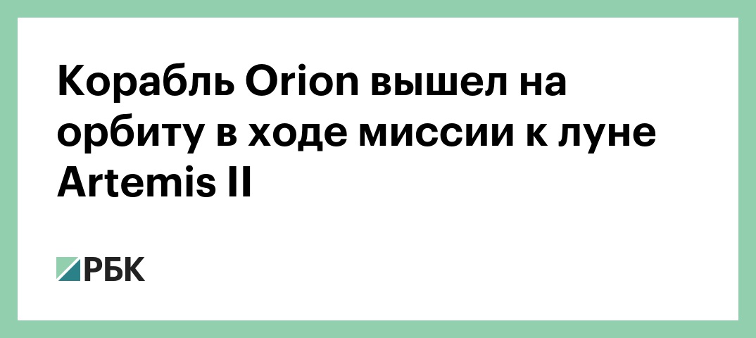 Пилотируемый космический корабль Orion в рамках миссии «Артемида-2» (Artemis II) к Луне вышел на орбиту спустя 8 минут после старта. РБК вел трансляцию.