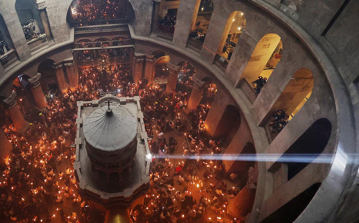 В храме Гроба Господня в Иерусалиме сошел Благодатный огонь. Церемонию ожидали тысячи паломников, которые по цепочке зажгли свечи и лампады.