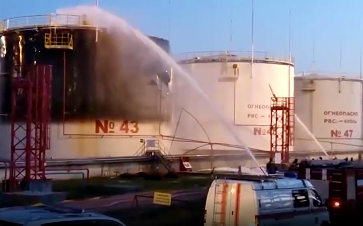 Губернатор Кондратьев показал кадры тушения пожара на Ильском НПЗ в Краснодарском крае