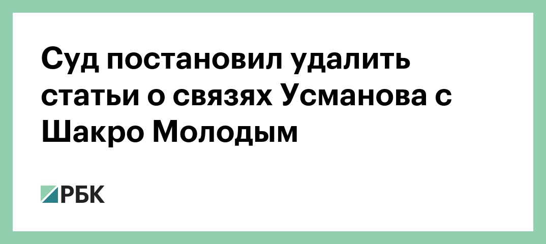 Басманный суд Москвы удовлетворил иск миллиардера, основателя и основного акционера USM Holdings Алишера Усманова, который требовал удалить публикации в интернет-СМИ о его предполагаемой связи с криминальным авторитетом Захарием Калашовым, известным как Шакро Молодой. Об этом РБК сообщили в пресс-службе Басманного суда.