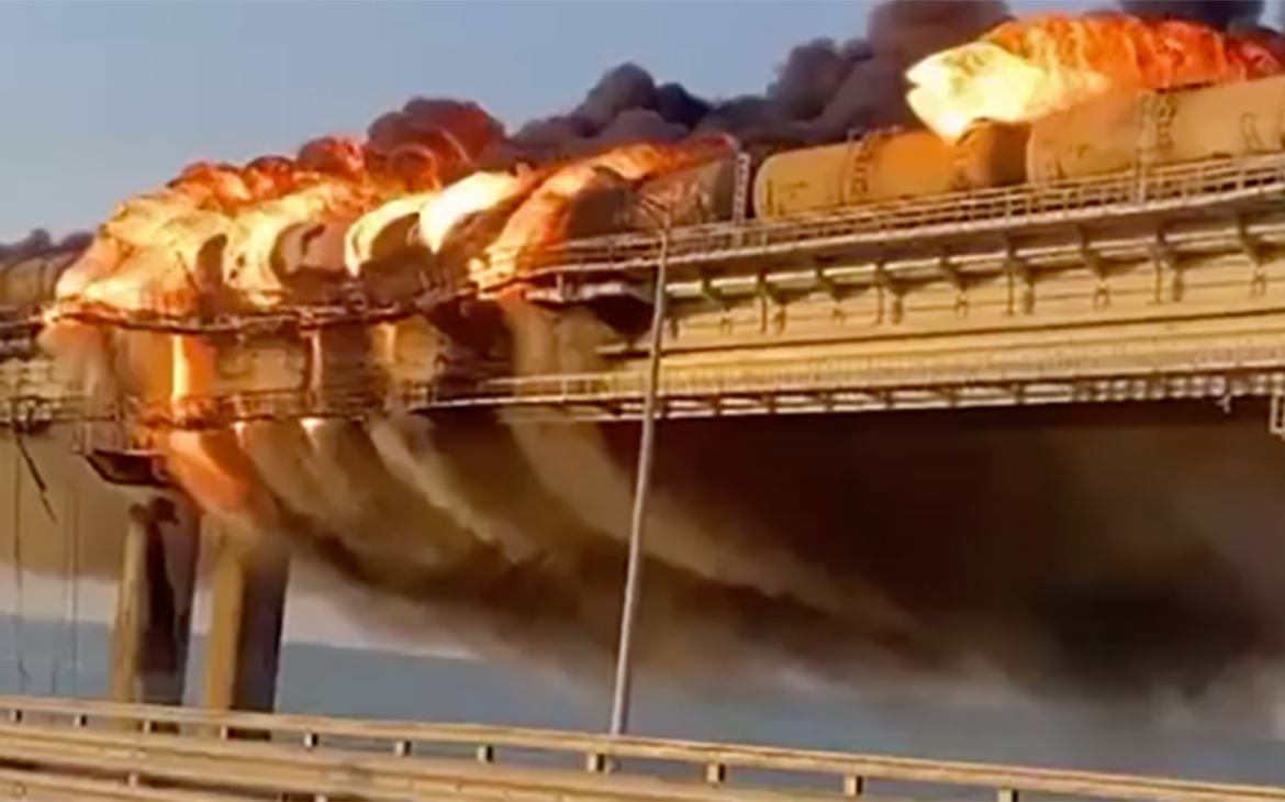 ЧП на Крымском мосту началось с топливной цистерны в хвосте грузового поезда, локомотив уже вывели на станцию в Керчи, сообщили «РИА Новости» в пресс-службе Крымской железной дороги (КЖД).