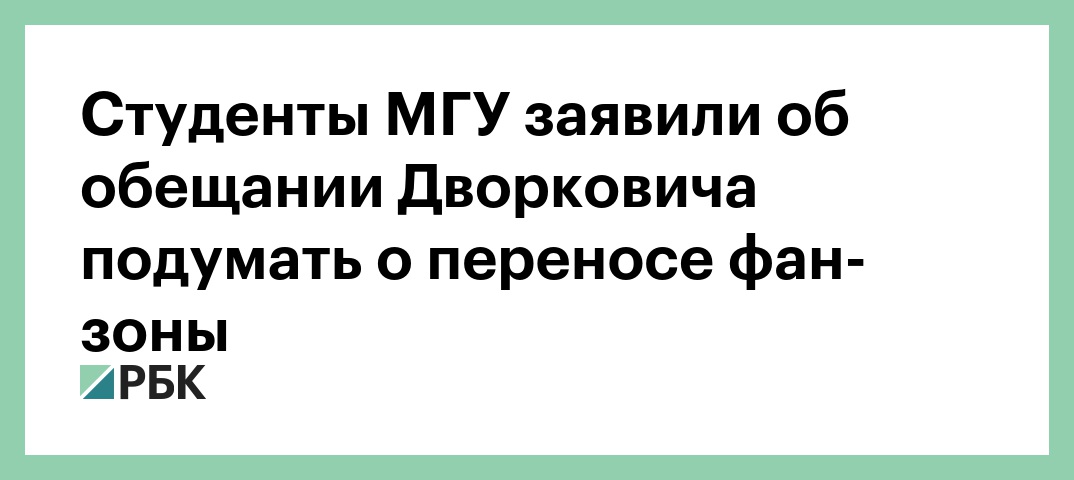 Вице-премьер и председатель Оргкомитета «Россия-2018» Аркадий Дворкович на встрече со студентами МГУ пообещал проверить возможные площадки для переноса фан-зоны с территории университета. Об этом РБК рассказали несколько студентов, которые были на встрече с чиновником. Встреча прошла в понедельник, 9 апреля, в здании оргкомитета «Россия-2018».