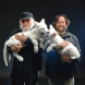 Джордж Мартин (слева) и генеральный директор Colossal Бен Ламм с лютоволками Ромулом и Ремом