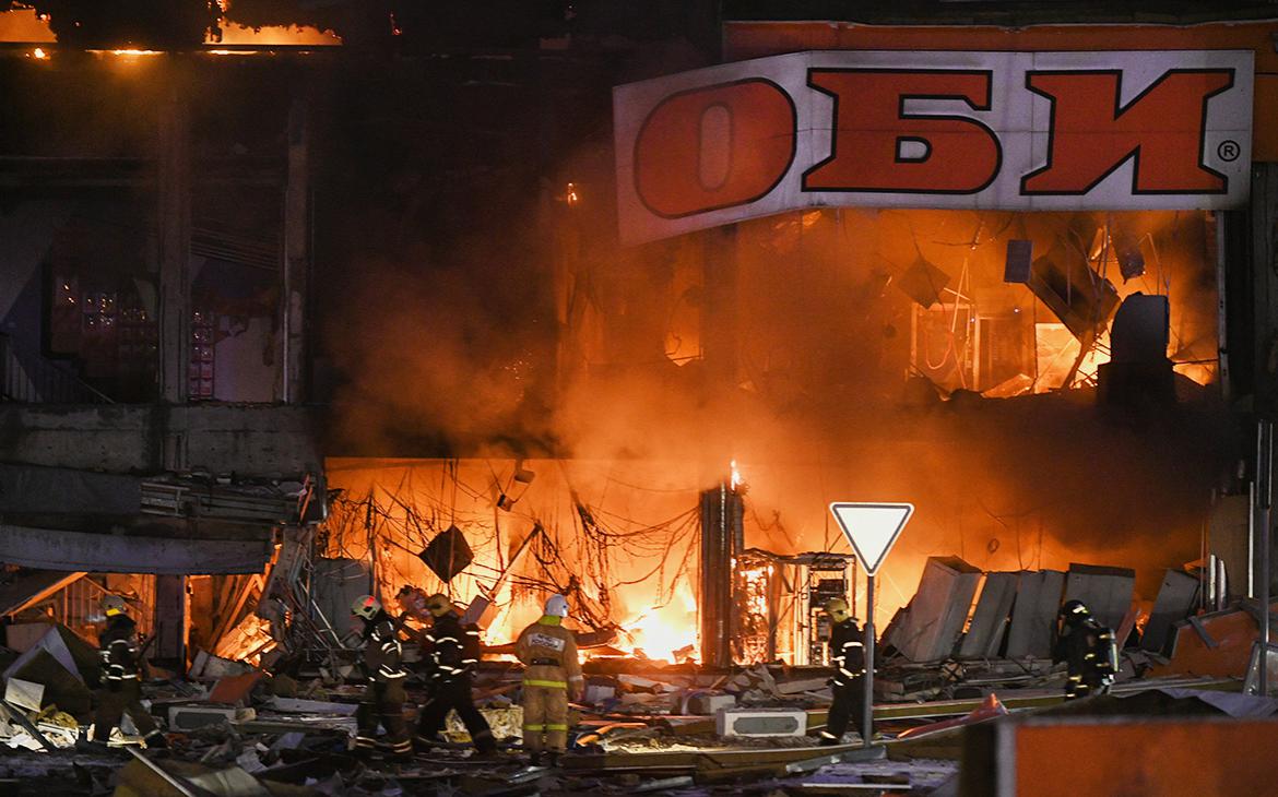 МЧС показало видео с места пожара в гипермаркете OBI в ТЦ «Мега» в Химках