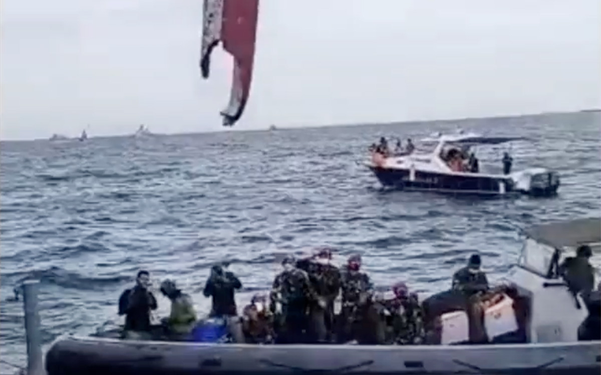 В Сети появилось видео поисковой операции в районе предполагаемого места крушения самолета Boeing 737-524 авиакомпании Sriwijaya Air в акватории Яванского моря. Кадры с места крушения опубликовало iNews.id.
