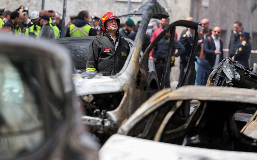 Появились кадры с места взрыва и пожара в Милане