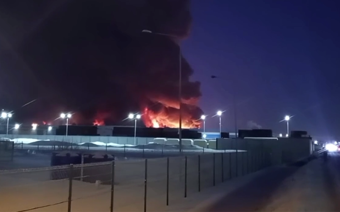 Кадры крупного пожара на петербургском складе Wildberries