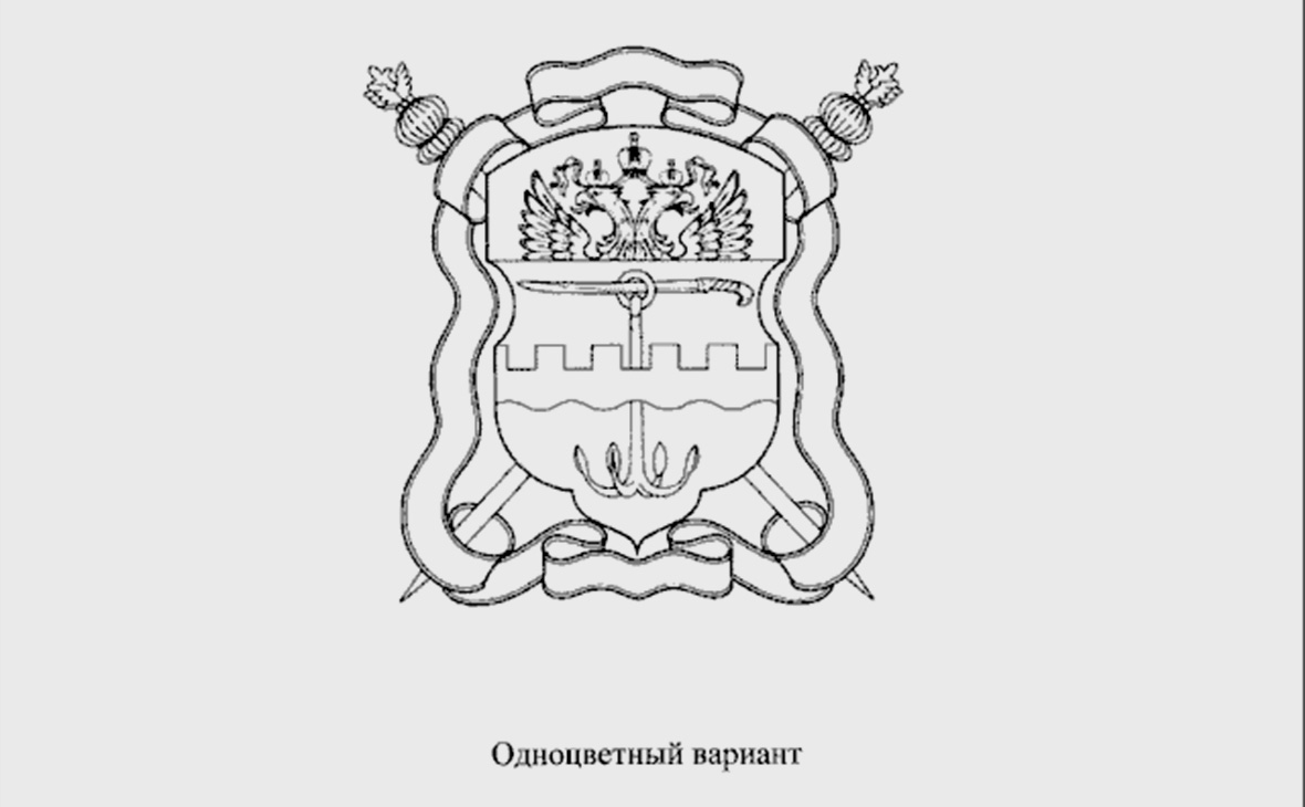 В указе говорится, что герб «представляет собой фигурный лазоревый щит с главной фигурой в виде серебряного двуглавого орла, поднявшего распущенные крылья, увенчанного двумя малыми коронами и — над ними — одной большой короной, соединенными лентой. В лапах орла — насеки с двуглавыми орлами в навершиях, положенные в косой крест и перевитые лазоревой с серебряной каймой лентой. На груди орла, в фигурном червленом щите, — серебряный всадник — Святой Георгий в лазоревом плаще, на серебряном коне под червленым седлом, обращенный влево и поражающий копьем опрокинутого навзничь и попранного конем зеленого дракона».