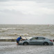 25 августа 2005 года. Ураган «Катрина» приближается к Флориде. На фото мужчина смывает песок с лица, когда ветер дует со скоростью свыше 22 м/с
