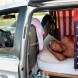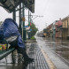 29 августа 2021 года. Человек сидит на остановке в поисках убежища перед ураганом «Ида» в Новом Орлеане, штат Луизиана