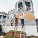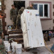 25 сентября 2024 года. Мужчина заполняет монтажной пеной отверстия в двери гаража в Порт-Ричи, штат Флорида