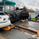 Судя по кадрам очевидцев с места аварии, несколько автомобилей получили серьезные повреждения, один съехал с дороги, еще один перевернулся.