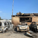За заправкой, с дальней стороны от СТО, находится закрытый двор, в котором располагаются несколько автосервисов. Большая часть боксов там выгорела, а десяток машин, припаркованных в тот вечер во дворе, сгорели. Еще часть машин оплавилась, часть остались целыми.