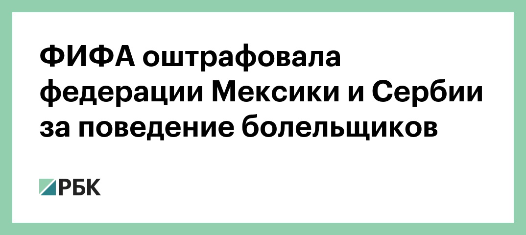 Дисциплинарный комитет Международной федерации футбола (ФИФА) наложил штрафы по $10 тыс. на футбольные федерации Мексики и Сербии за поведение болельщиков из их стран на матчах чемпионата мира, который в настоящее время проходит в России. Об этом сообщает газета El Pais.