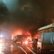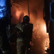 На фото видно горящее здание и пожарных, которые пытаются ликвидировать огонь.
