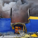 Пожар полностью охватил здание гипермаркета, произошло обрушение кровли. Спасатели эвакуировали из здания около 200 человек