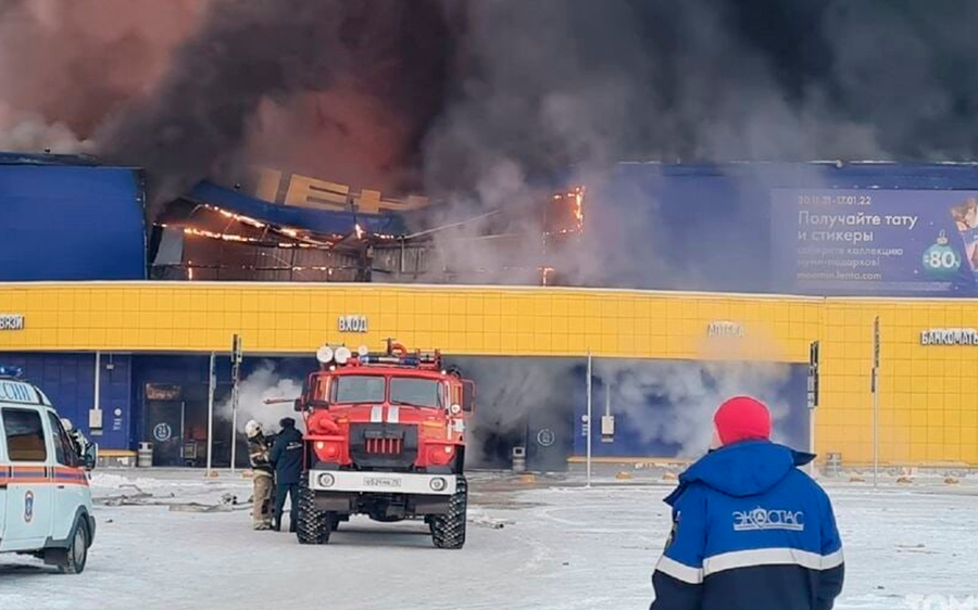 Дым и взрывы: кадры, как в Томске целиком сгорел гипермаркет «Лента»