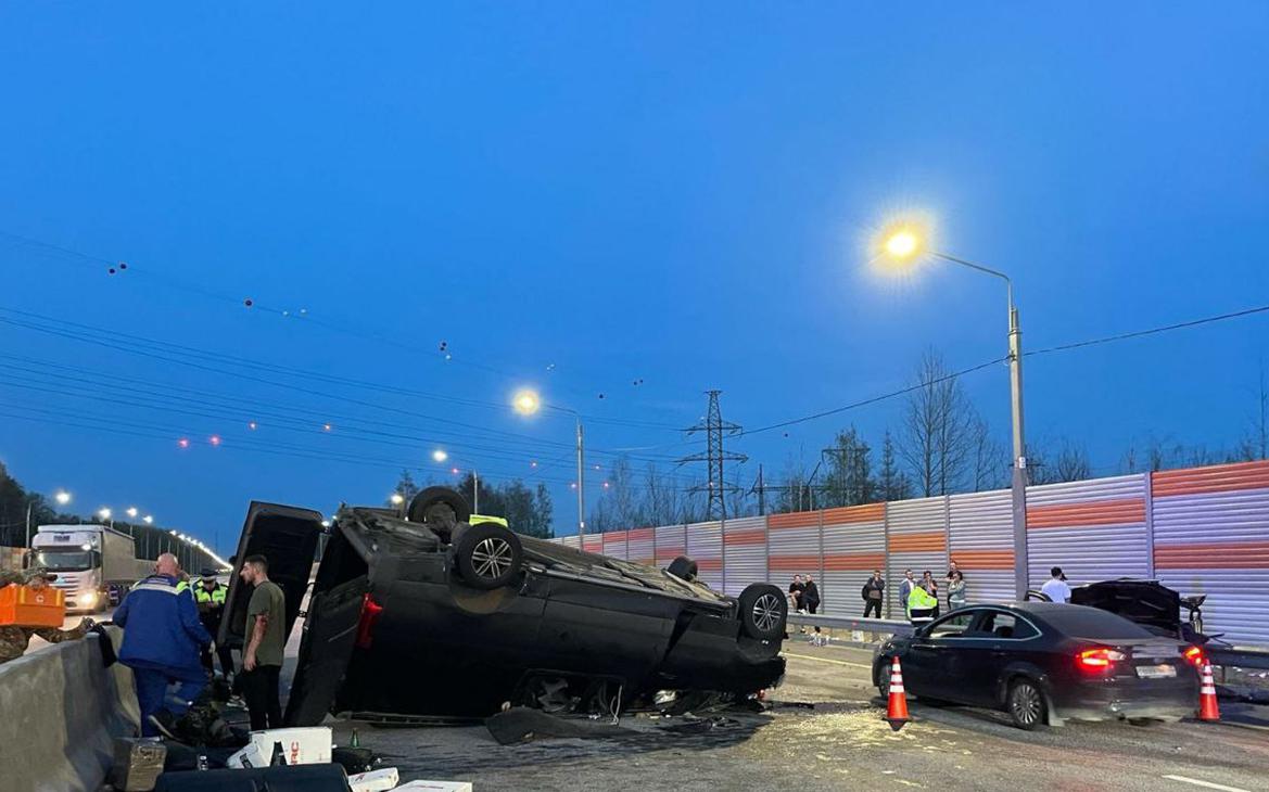 На кадрах, которые показала прокуратура, видно, что микроавтобус перевернулся после столкновения. Несколько автомобилей существенно повреждены, у одного из них сильно помят капот.