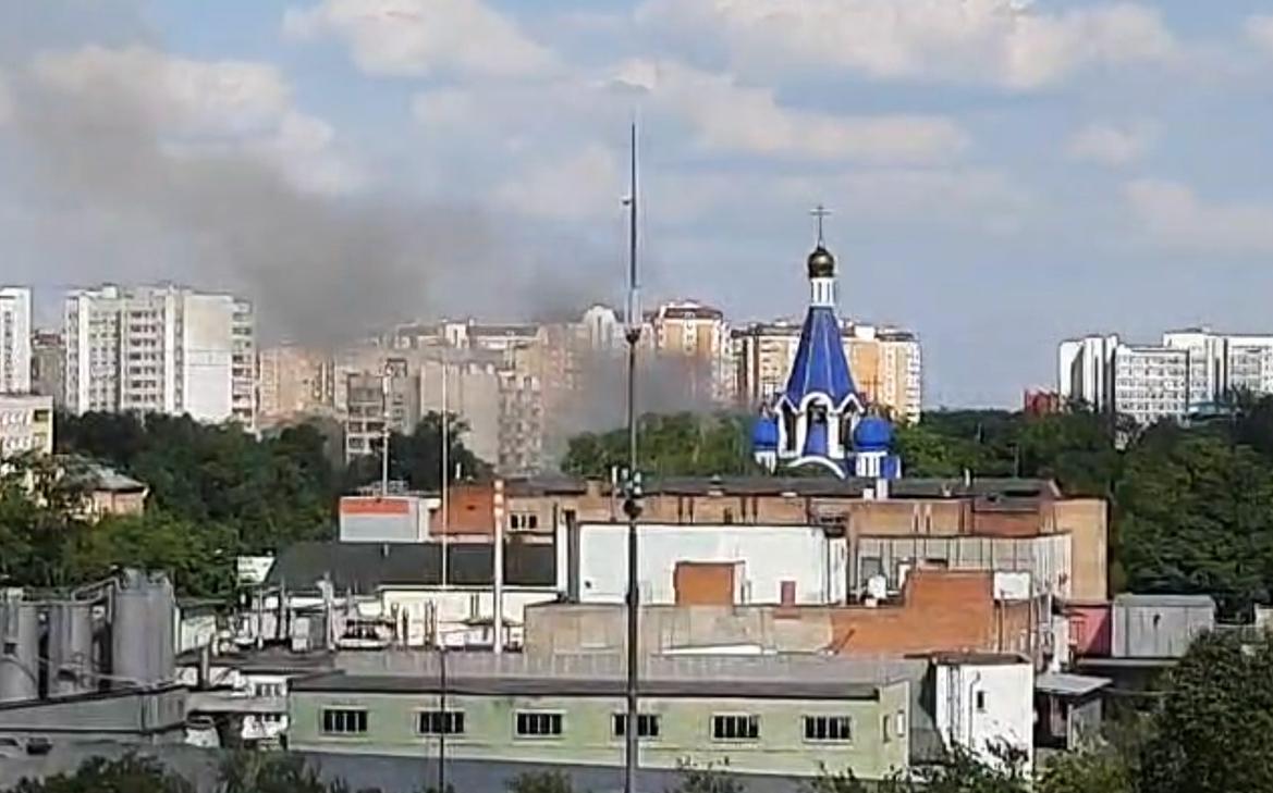 На опубликованных в соцсетях кадрах видны клубы серого дыма, который валит из окон торгового центра. Корреспондент РБК передает, что дым можно наблюдать с расстояния примерно 1 км.