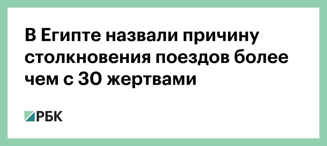 Столкновение двух поездов в Египте, в результате которого погибли десятки человек, произошло после того, как «неустановленные лица» привели в действие стоп-кран в одном из них, сообщает Reuters со ссылкой на Управление железных дорог страны.