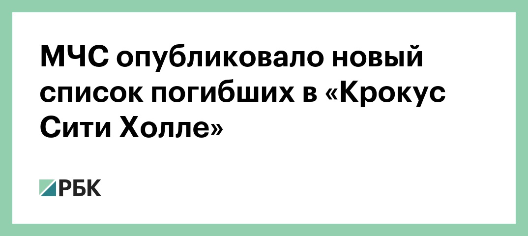 МЧС опубликовало новый список погибших в «Крокус Сити Холле», в нем содержится 120 имен (ранее было 95). Список приведен по состоянию на 20:00 мск и составлен по данным Минздрава России.