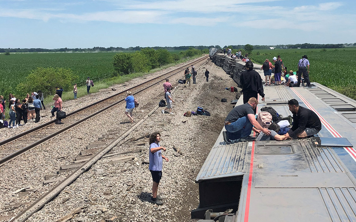 Пассажирский поезд сошел с рельсов после столкновению с грузовиком недалеко от города Мендон в американском штате Миссури, следует из заявления транспортной компании Amtrak.