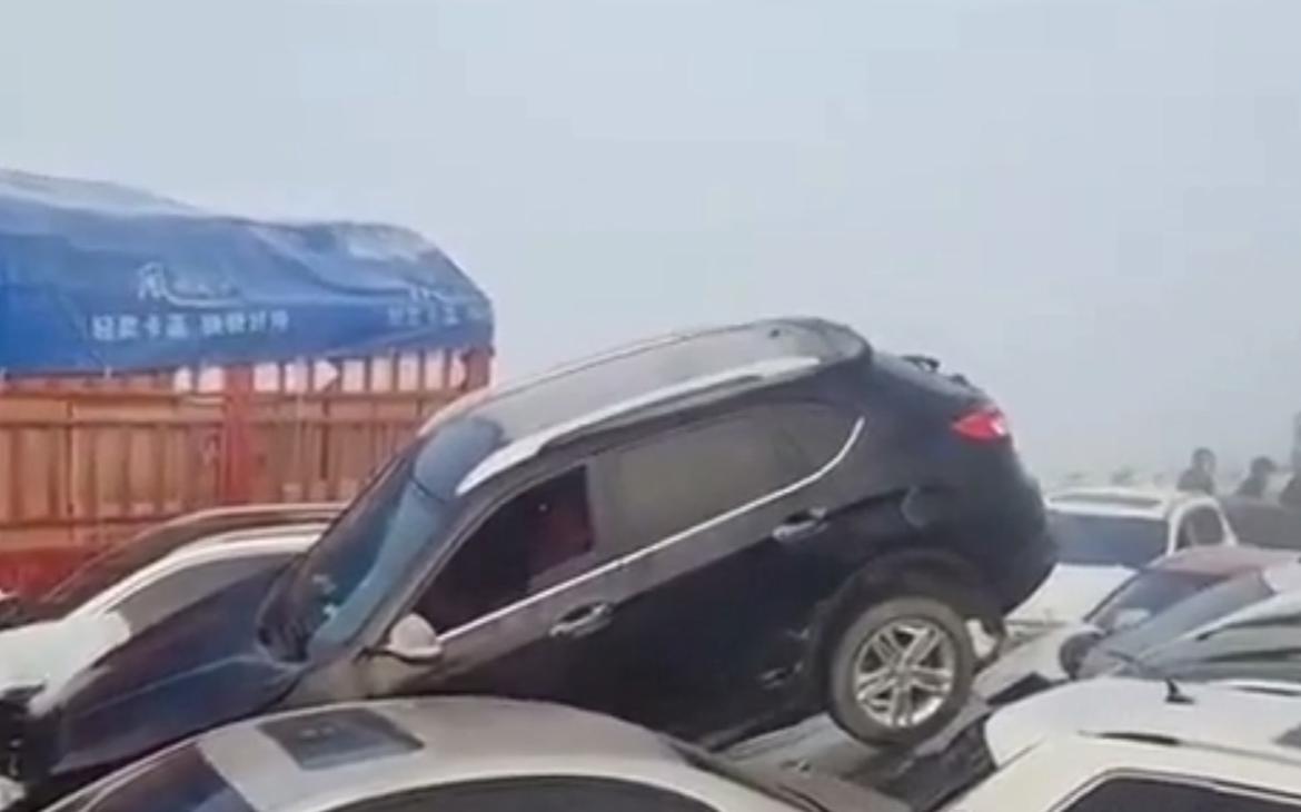 200 машин столкнулись в Китае из-за сильного тумана. Видео