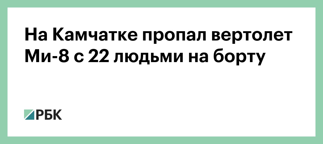 На Камчатке перестал выходить на связь вертолет Ми-8, сообщает «Интерфакс» со ссылкой на собеседника в экстренных службах. В Росавиации сообщили, что на борту находились 22 человека: три члена экипажа и 19 пассажиров.
