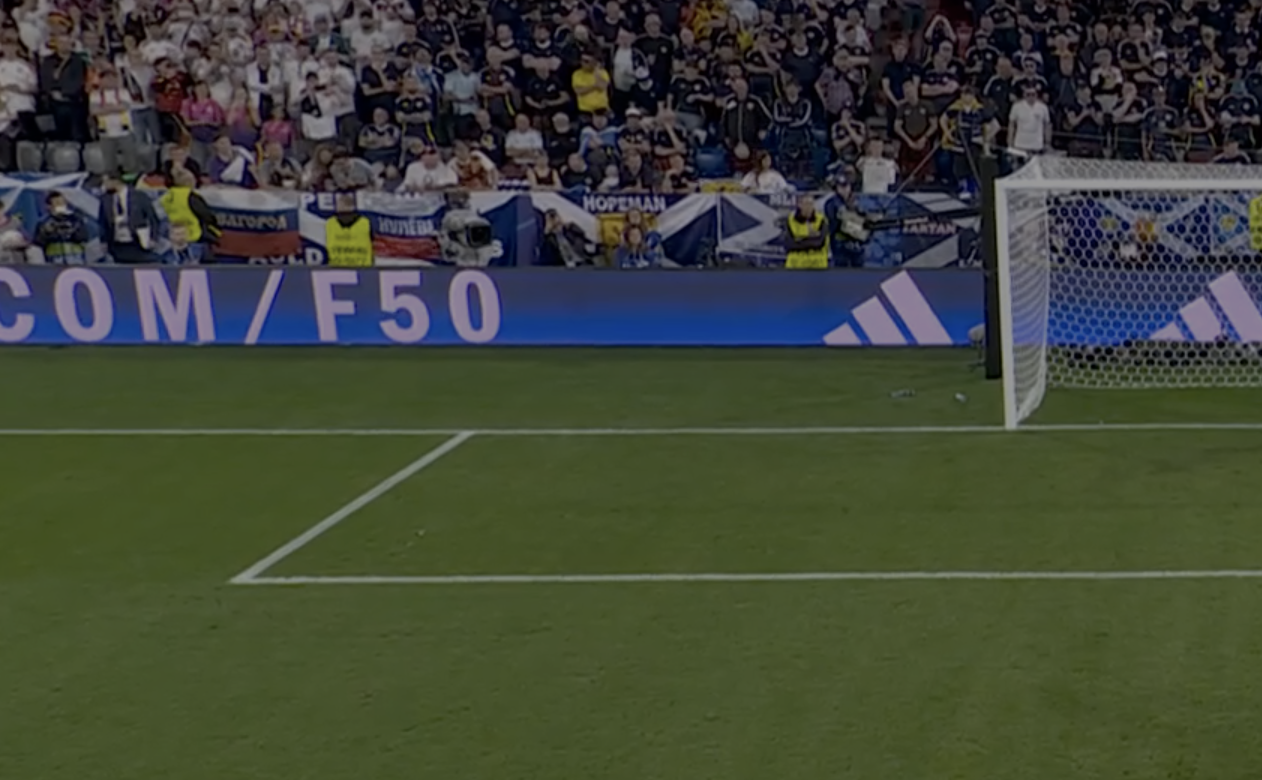 В конце первого тайма при счете 2:0 в пользу хозяев Евро (итоговый счет — 5:1) в ворота шотландцев назначили пенальти. Во время видеоповтора нарушения в кадр попали два российских флага. Их также можно было разглядеть перед исполнением самого 11-метрового. На одном из флагов была надпись «Белгород».