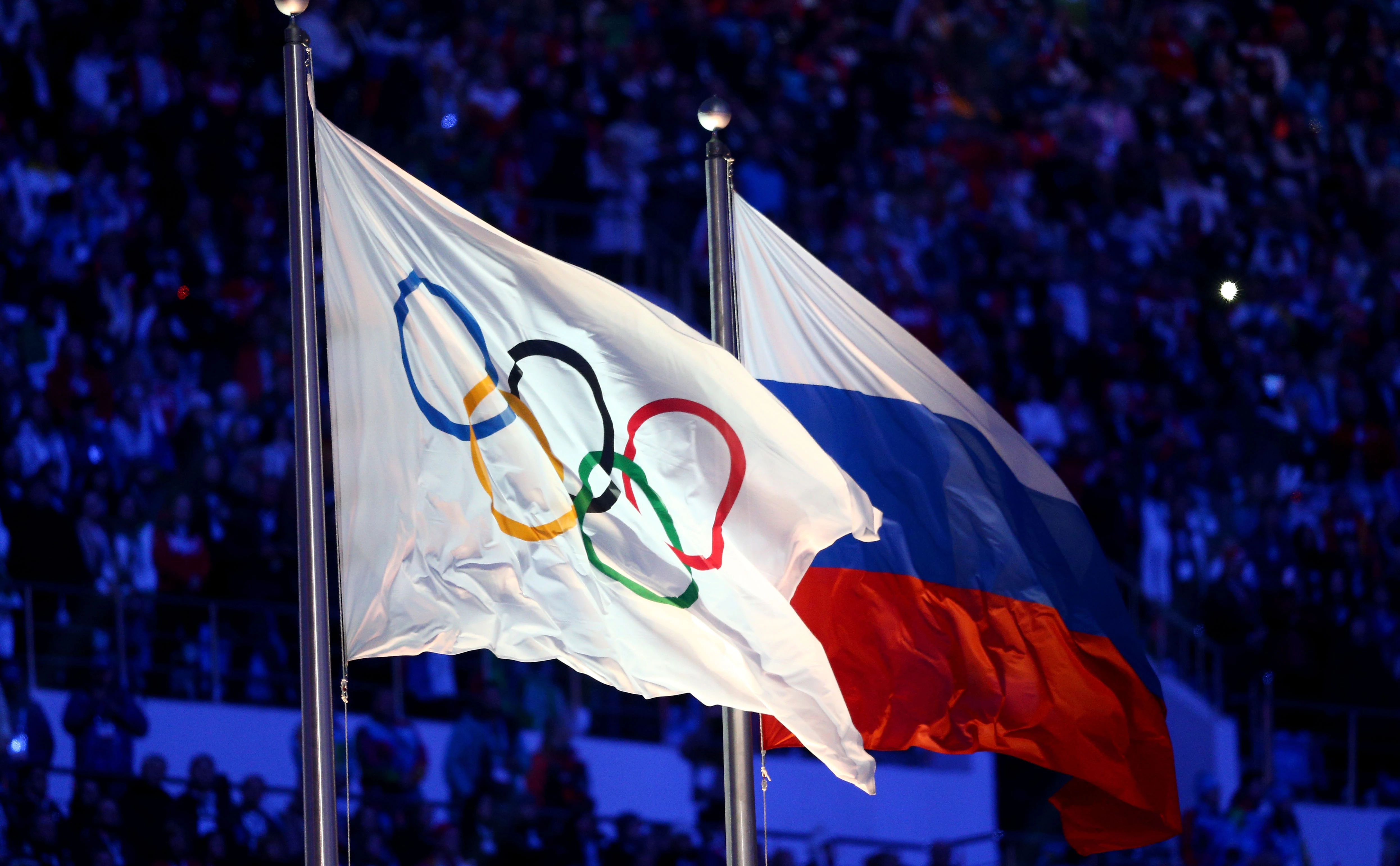 Флаги Международного олимпийского комитета и России