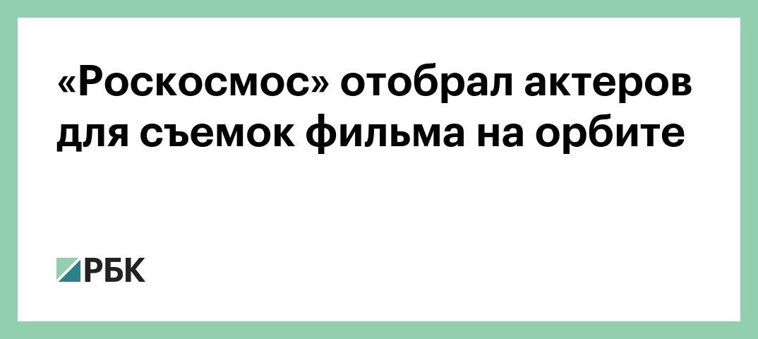 В съемках первого в истории фильма на МКС могут принять участие актеры, снимавшиеся в картинах «Край», «Битва за Севастополь» и «Звоните ДиКаприо!». Старт экспедиции намечен на октябрь